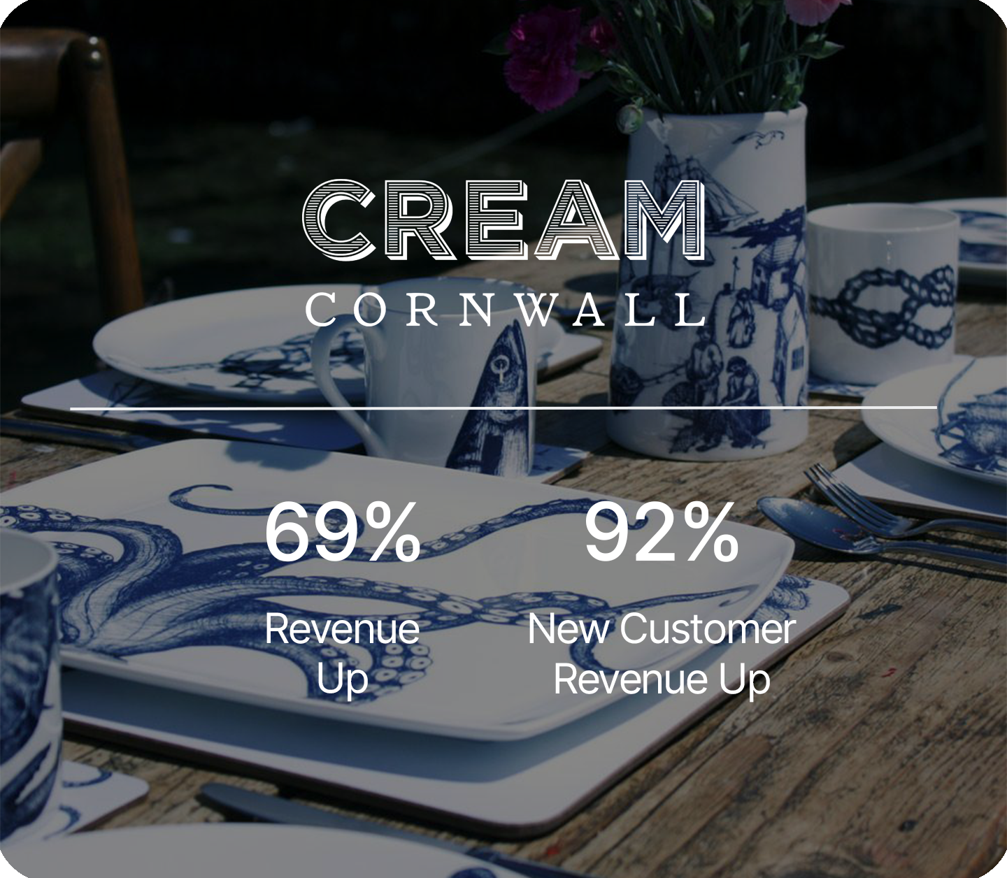 Cream Cornwall needed more consistent acquisition performance. We refined the strategy, improved creative output, and built a testing plan across Meta and Google. That unlocked stronger new customer growth and meaningful overall revenue growth.